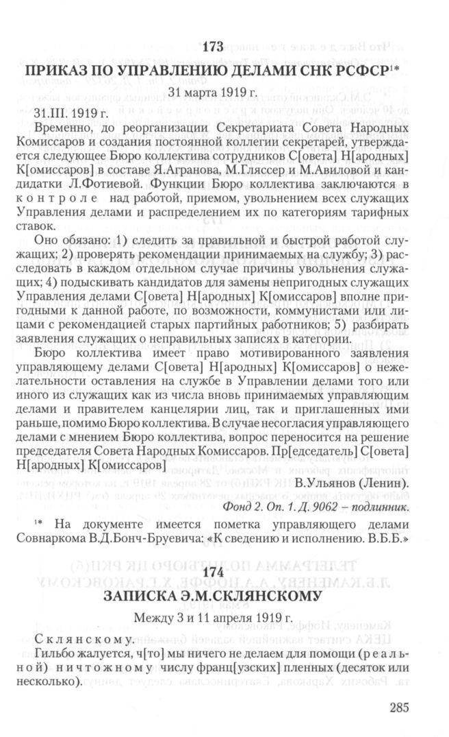 Главная В.И. Ленин. Неизвестные документы. 1891—1922 Документы Записка Э.М. Склянскому. Между 3 и 11 апреля 1919 г.