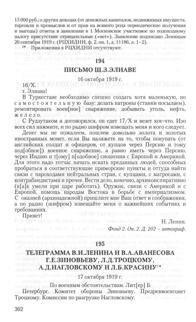 ТЕЛЕГРАММА В.И.ЛЕНИНА И В.А.АВАНЕСОВА Г.Е.ЗИНОВЬЕВУ, Л.Д.ТРОЦКОМУ, А.Д.НАГЛОВСКОМУ И Л.Б.КРАСИНУ [a]