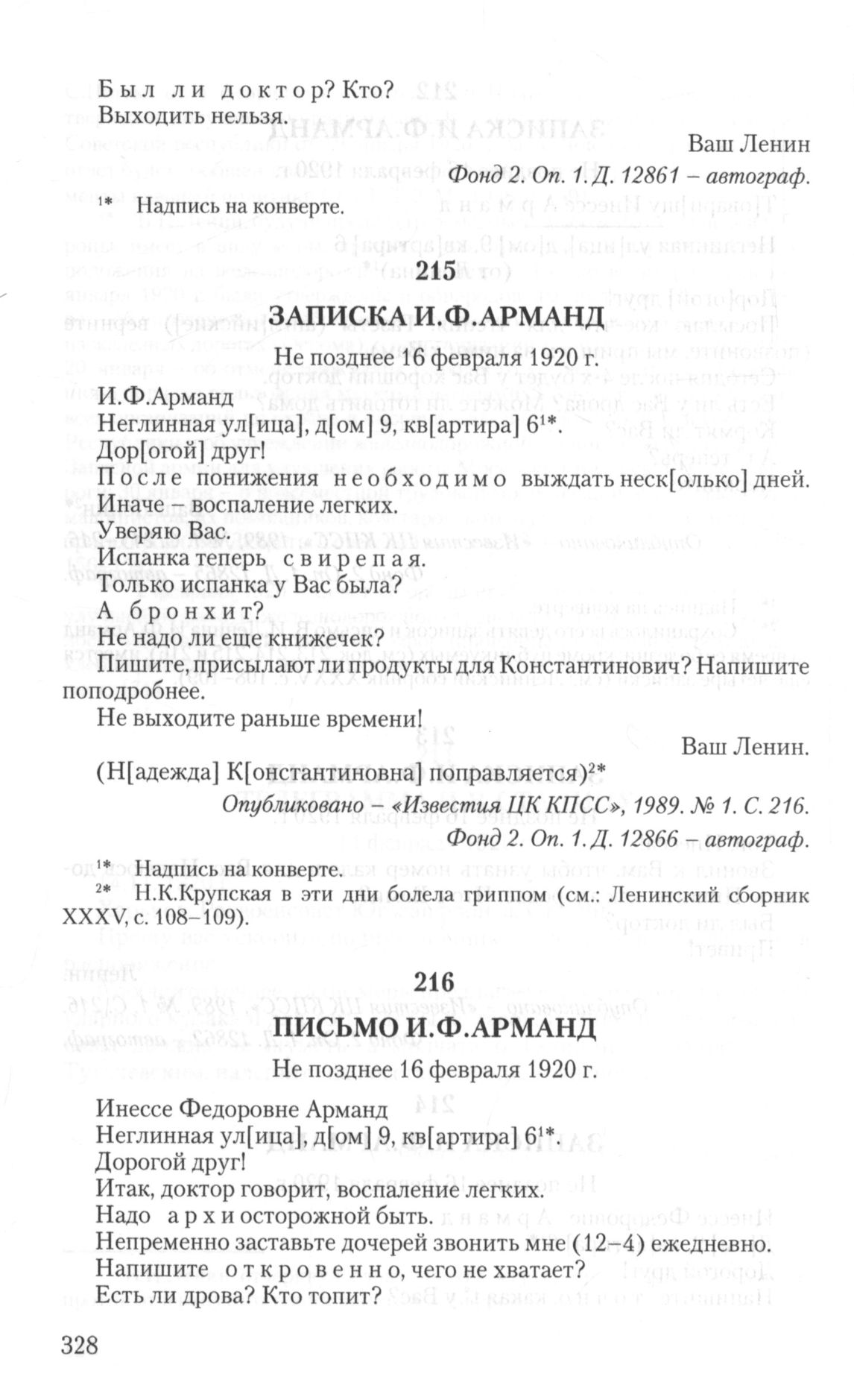 Главная В.И. Ленин. Неизвестные документы. 1891—1922 Документы Письмо И.Ф. Арманд. Не позднее 16 февраля 1920 г.