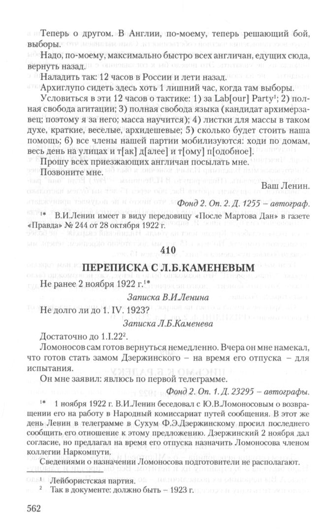 Главная В.И. Ленин. Неизвестные документы. 1891—1922 Документы Переписка с Л.Б. Каменевым. Не ранее 2 ноября 1922 г.