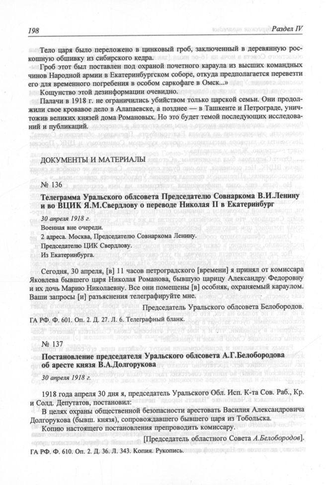 Архив новейшей истории России. Серия «Публикации». Т. III. Скорбный путь Романовых (1917—1918 гг.). Гибель царской семьи. Сб. документов и материалов. — М.: РОССПЭН, 2001.