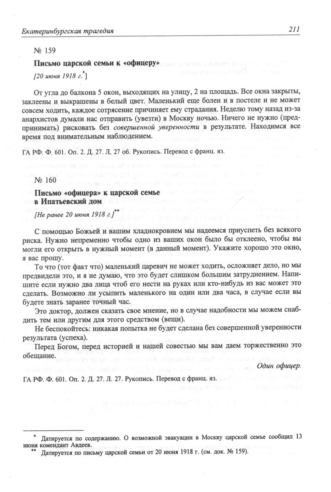 Письмо «офицера» к царской семье в Ипатьевский дом. [Не ранее 20 июня 1918 г.] // ГА РФ. Ф. 601. Оп. 2. Д. 27. Л. 27. Рукопись. Перевод с франц. яз.