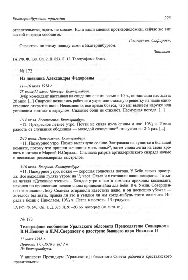Из дневника Александры Федоровны. 11—16 июля 1918 г. // ГА РФ. Ф. 640. Оп. 1. Д. 326. Л. 91—93 об. Автограф (на англ. яз.).