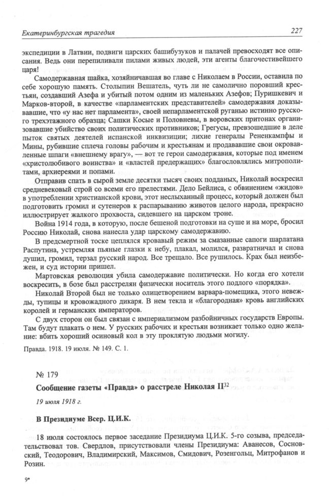 Сообщение газеты «Правда» о расстреле Николая II. 19 июля 1918 г. В Президиуме Всер. Ц.И.К.