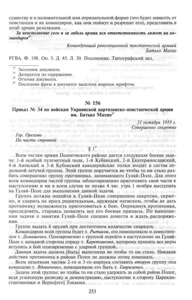 Приказ № 34 по войскам Украинской партизанско-повстанческой армии им. Батько Махно. 31 октября 1919 г.