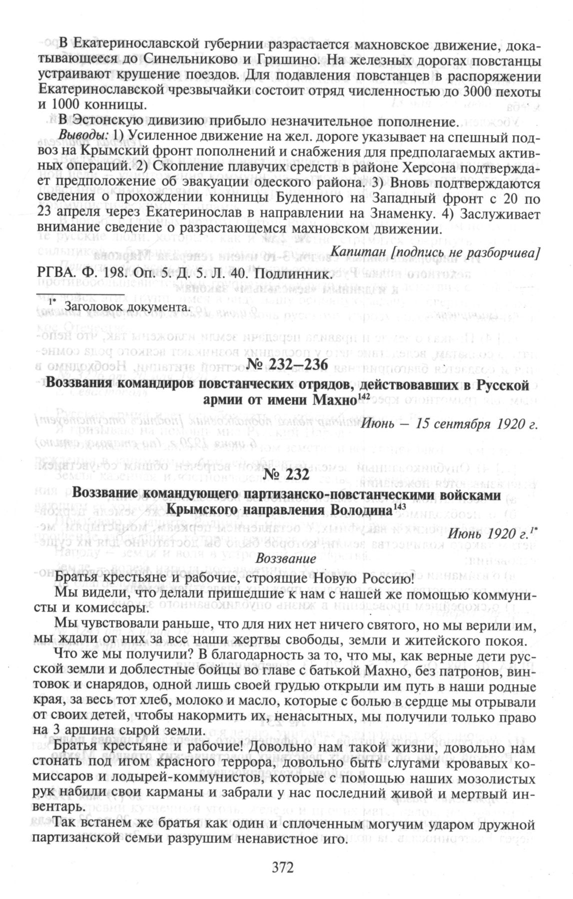 Воззвание командующего партизанско-повстанческими войсками Крымского направления Володина. Июнь 1920 г.