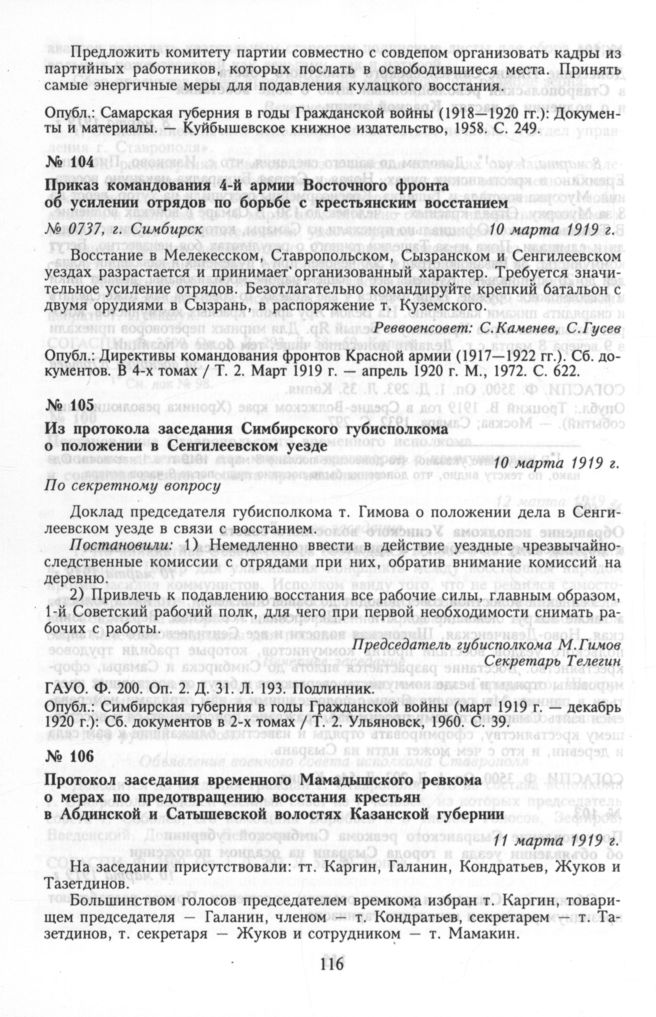 «Чапанная война» 3 — 15 марта 1919 г. Приказ командования 4-й армии Восточного фронта об усилении отрядов по борьбе с крестьянским восстанием. 10 марта 1919 г. // Директивы командования фронтов Красной армии (1917—1922 гг.). Сб. документов. В 4-х томах / Т. 2. Март 1919 г. —апрель 1920 г. М., 1972. С. 622.