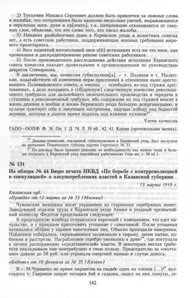 Из обзора № 44 Бюро печати НКВД «По борьбе с контрреволюцией и спекуляцией» о злоупотреблениях властей в Казанской губернии. 13 марта 1919 г.
