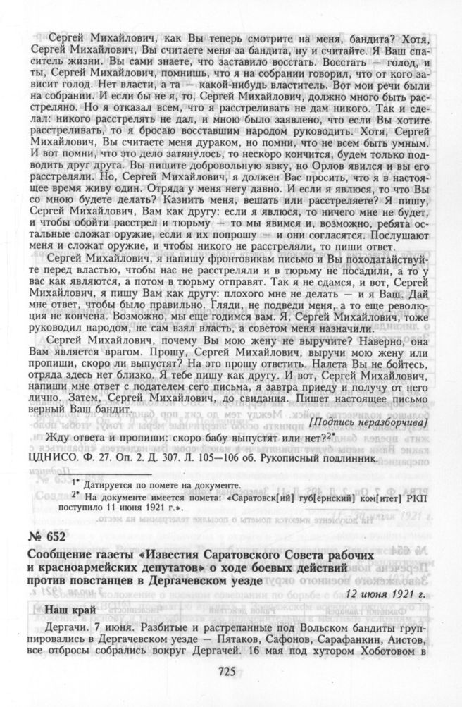 Сообщение газеты «Известия Саратовского Совета рабочих и красноармейских депутатов» о ходе боевых действий против повстанцев в Дергачевском уезде. 12 июня 1921 г. // Известия Саратовского Совета рабочих и красноармейских депутатов. 1921. № 129. 12 июня.