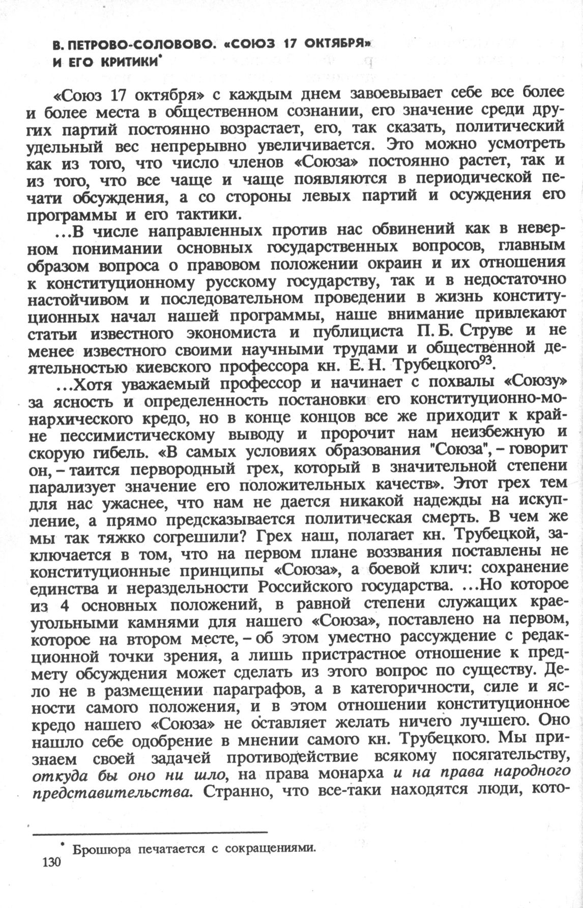 В. Петрово-Соловово. «Союз 17 октября» и его критики // В. Петрово-Соловово. «Союз 17 октября» и его критики. М., 1906.
