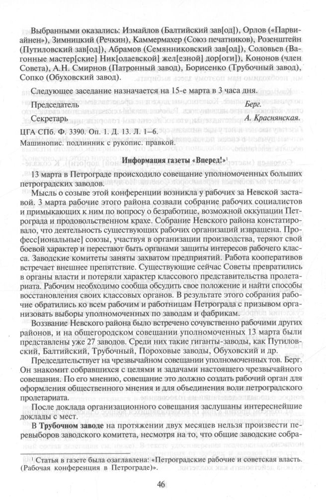 Материалы I заседания Чрезвычайного собрания уполномоченных фабрик и заводов Петрограда 13 марта. Информация газеты «Вперед!»