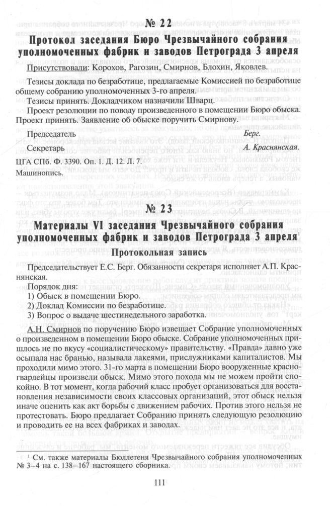 Протокол заседания Бюро Чрезвычайного собрания уполномоченных фабрик и заводов Петрограда 3 апреля