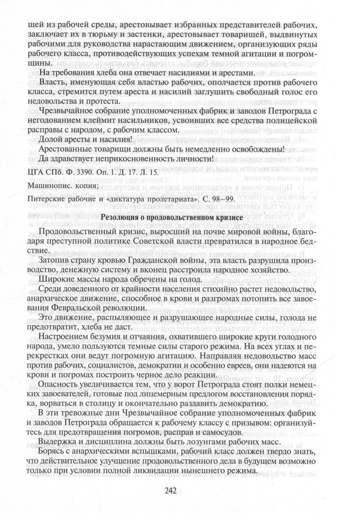 Питерские рабочие и «диктатура пролетариата». Октябрь 1917-1929. Сб. документов / Отв. ред. В.Ю. Черняев. СПб., 2000. С. 99—101.