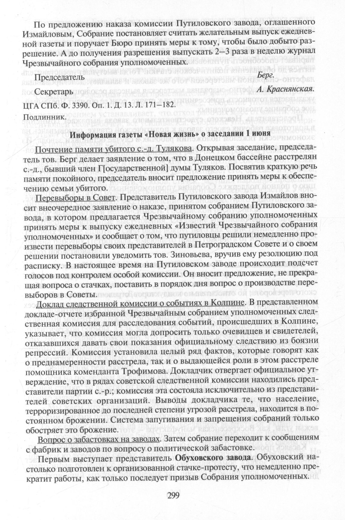 Материалы XIV и XV заседаний Чрезвычайного собрания уполномоченных фабрик и заводов Петрограда 29 мая - 1 июня. Информация газеты «Новая жизнь» о заседании 1 июня // Новая жизнь. 1918. № 106(321). 2 июня (20 мая); Независимое рабочее движение в 1918 г. С. 180—182.