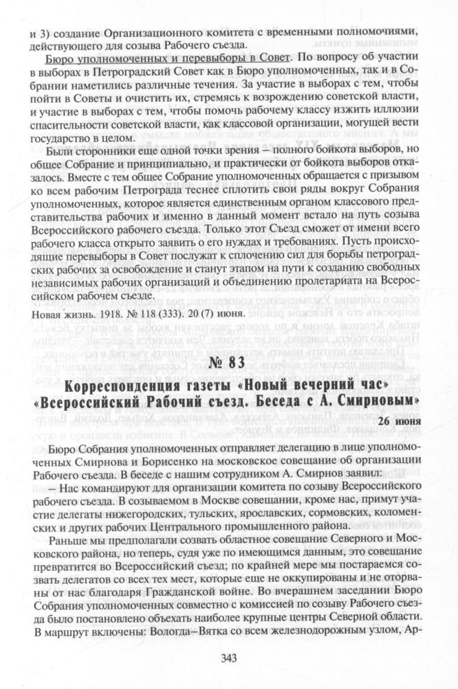 Корреспонденция газеты «Новый вечерний час» «Всероссийский Рабочий съезд. Беседа с А. Смирновым». 26 июня // Новый вечерний час. 1918. № 98. 26 июня.
