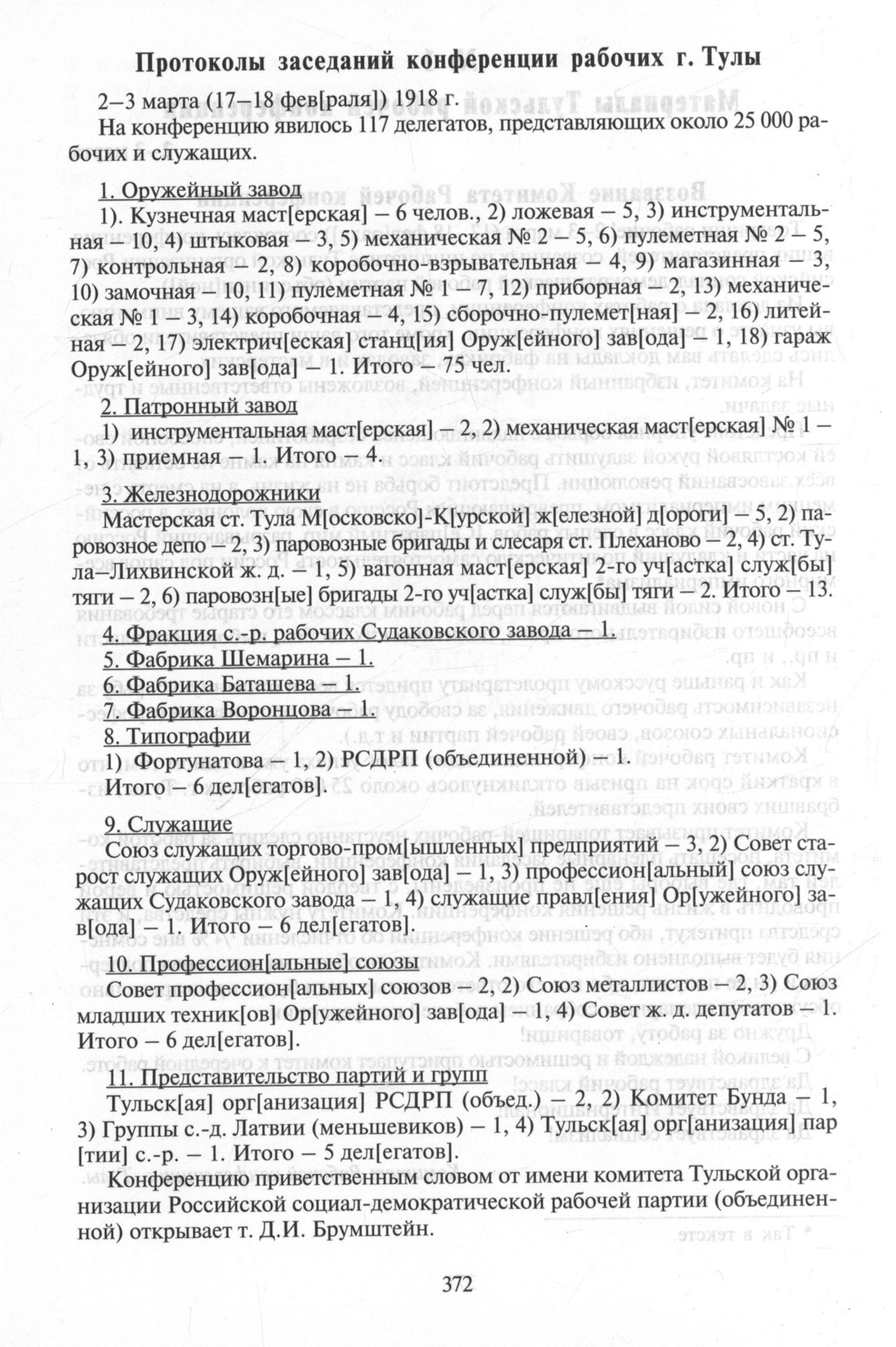 Материалы Тульской рабочей конференции. 2-3 марта. Протоколы заседаний конференции рабочих г. Тулы // ГАТО. Ф. P-1861. Оп. 1. Д. 16. Л. 210-210 об. Типограф, печать.
