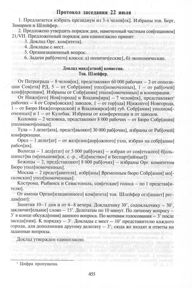 Материалы Рабочего съезда Центральной и Северной областей 21-23 июля. Протокол заседания 22 июля