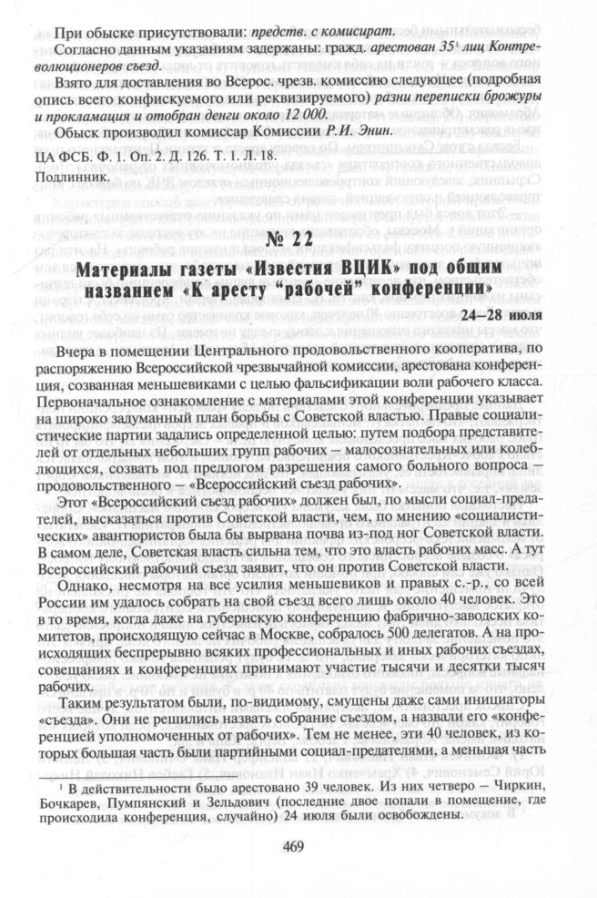 Материалы газеты «Известия ВЦИК» под общим названием «К аресту “рабочей” конференции». 24—28 июля
