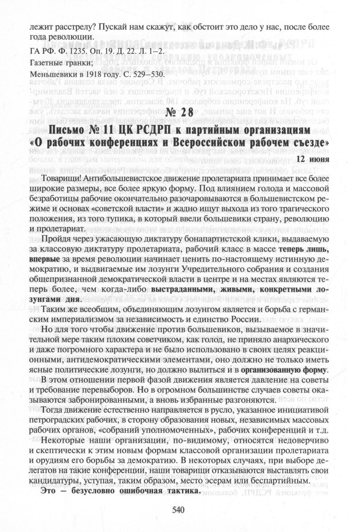 Письмо № 11 ЦК РСДРП к партийным организациям «О рабочих конференциях и Всероссийском рабочем съезде». 12 июня