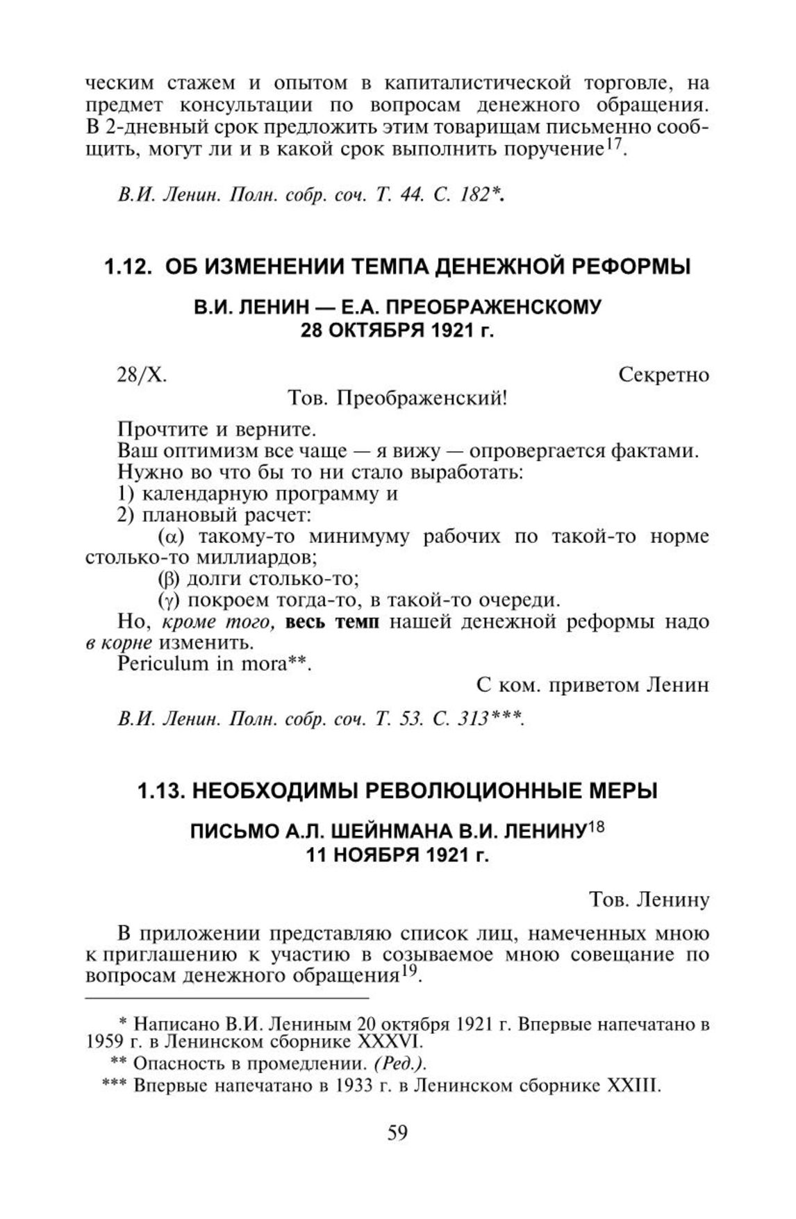 Об изменении темпа денежной реформы. В.И. Ленин - Е.А. Преображенскому. 28 октября 1921 г. // В.И. Ленин. Полн. собр. соч. Т. 53. С. 313.