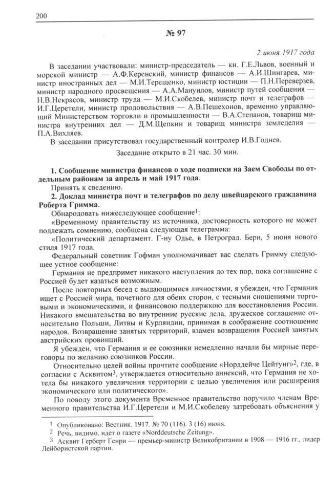 Журнал заседания Временного правительства № 97. 2 июня 1917 года