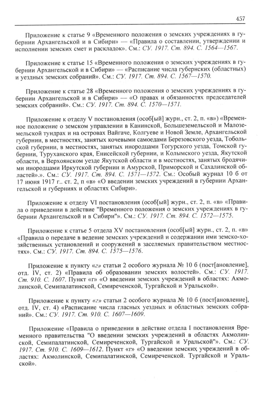 Особый журнал заседания Временного правительства № 10 б. 17 июня 1917 года. Приложение к статье 28 «Временного положения о земских учреждениях в губернии Архангельской и в Сибири» особого журнала № 10 б. «О правах и обязанностях председателей земских собраний» // СУ. 1917. Ст. 894. С. 1570—1571.