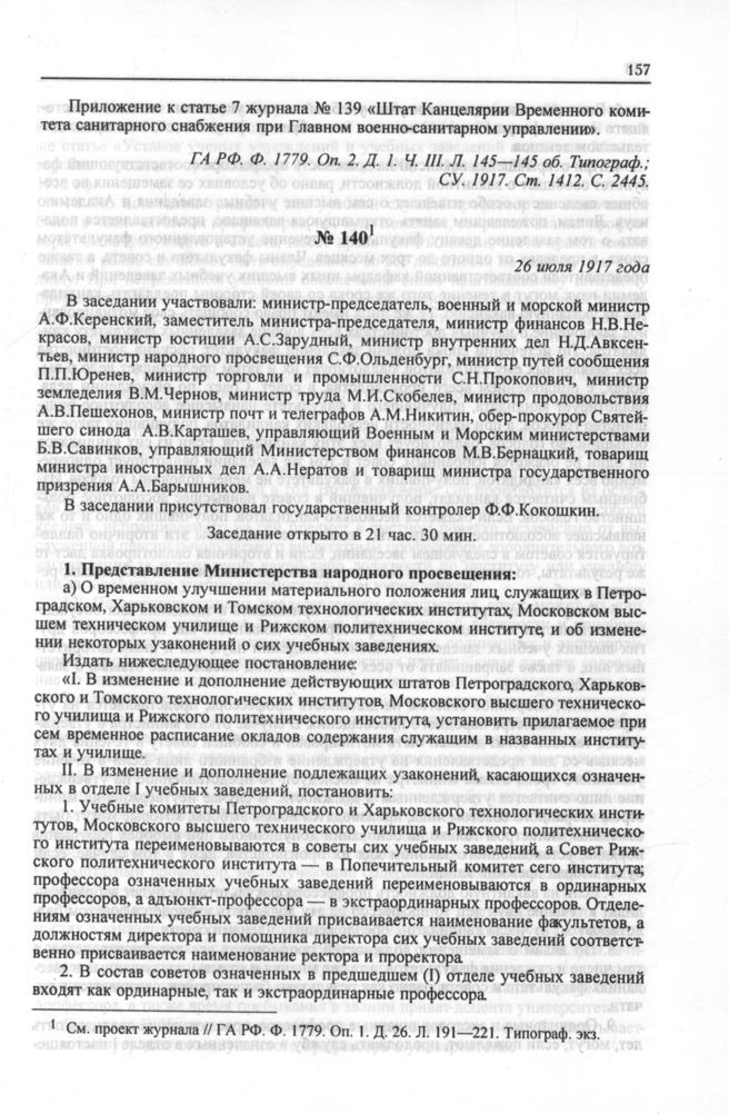 Архив новейшей истории России. Серия «Публикации». Т. IX. Журналы заседаний Временного правительства: Март—октябрь 1917 года. В 4-х т. Т. 3. Июль—август 1917 года. — М.: РОССПЭН, 2004.
