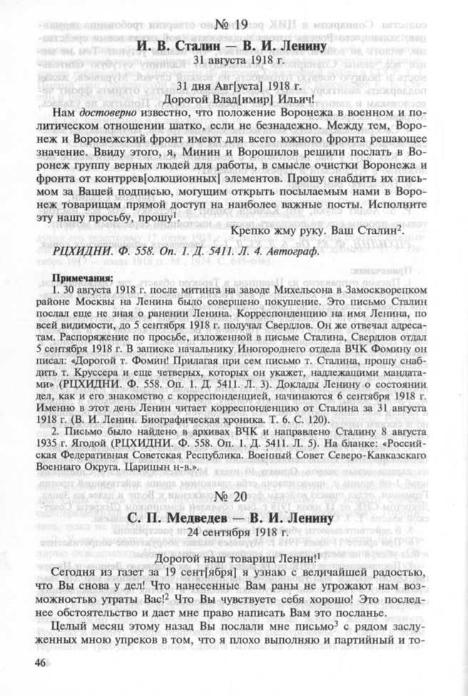 И. В. Сталин — В. И. Ленину. 31 августа 1918 г.