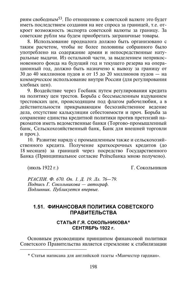 Финансовая политика Советского правительства. Статья Г.Я. Сокольникова. Сентябрь 1922 г.