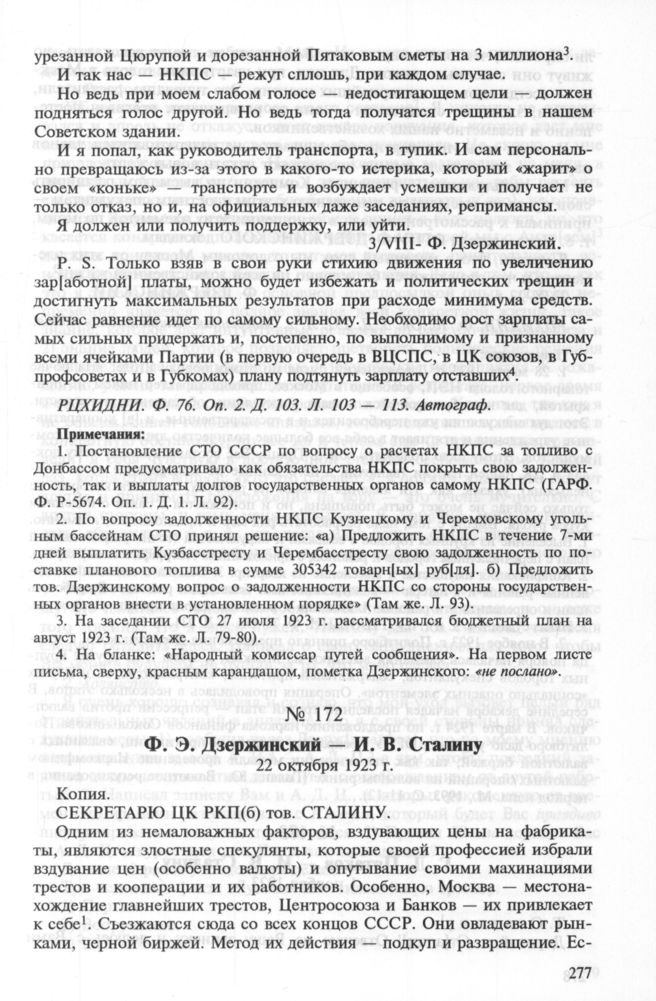 Ф. Э. Дзержинский — И. В. Сталину. 22 октября 1923 г. // РЦХИДНИ. Ф. 76. Oп. 3. Д. 231. Л. 2. Заверенная машинописная копия.