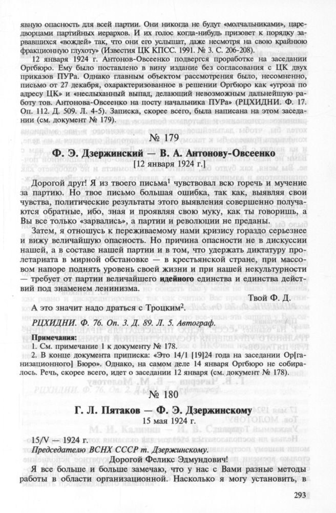 Ф. Э. Дзержинский — В. А. Антонову-Овсеенко. [12 января 1924 г.] // РЦХИДНИ. Ф. 76. Оп. 3. Д. 89. Л. 5. Автограф.