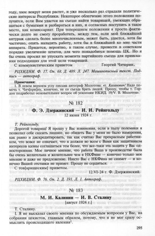 Ф. Э. Дзержинский — И. И. Рейнгольду. 12 июня 1924 г.
