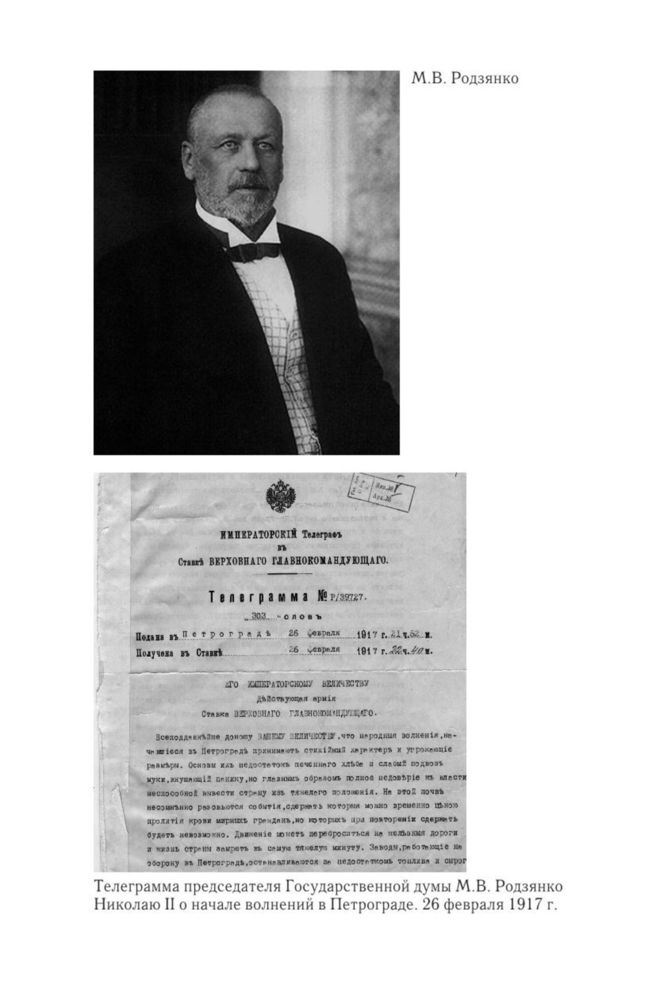 Телеграмма председателя Государственной думы М.В. Родзянко Николаю II о начале волнений в Петрограде. 26 февраля 1917 г.