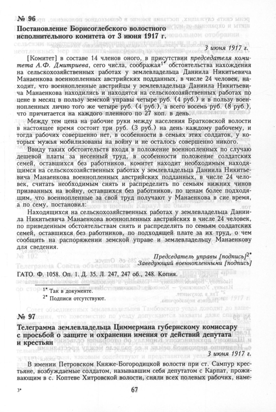 Крестьянское движение в Тамбовской губернии. 1917—1918: Документы и материалы. — М.: РОССПЭН, 2003.