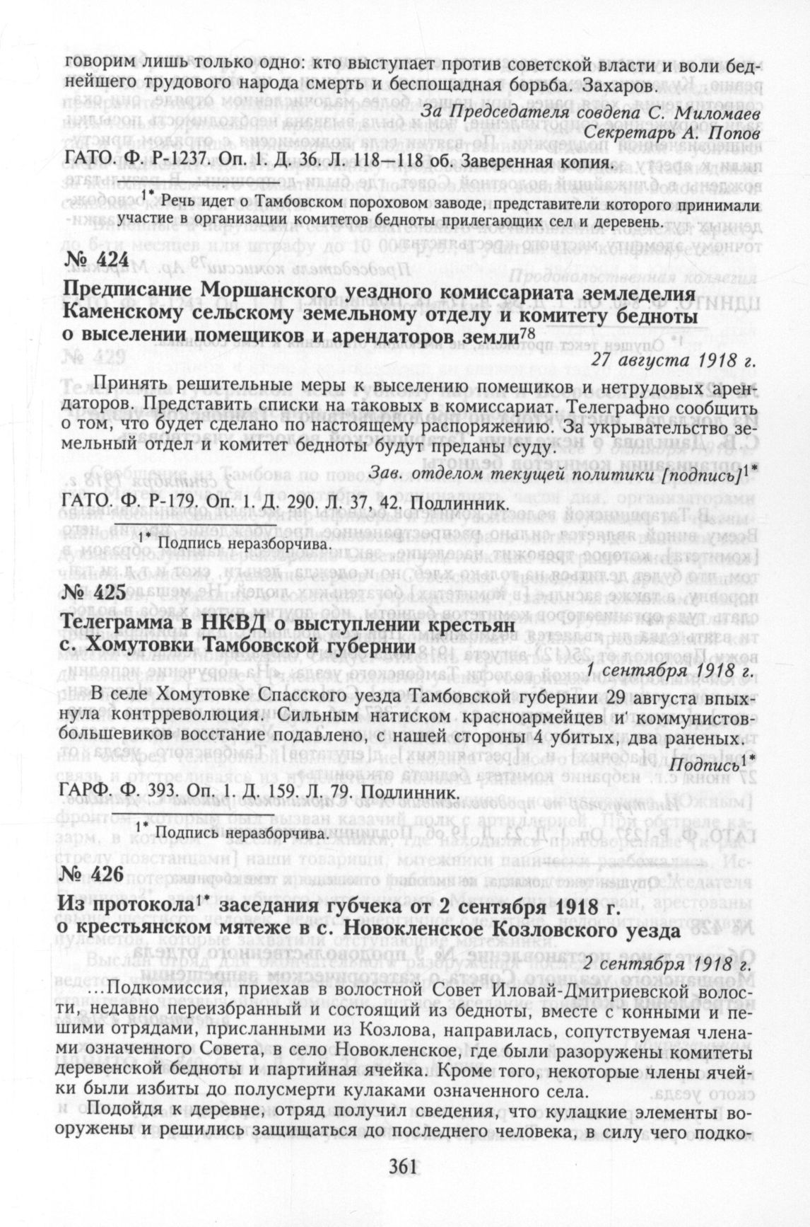 Крестьянское движение в Тамбовской губернии. 1917—1918: Документы и материалы. — М.: РОССПЭН, 2003.