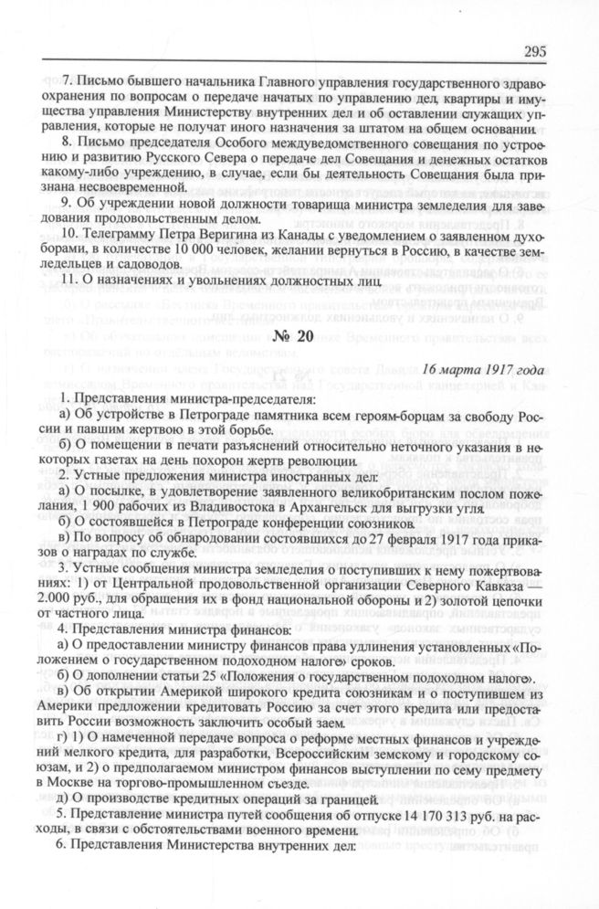 Перечень вопросов, рассматривавшихся на заседаниях Временного правительства. Журнал № 20. 16 марта 1917 года