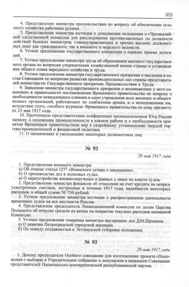 Перечень вопросов, рассматривавшихся на заседаниях Временного правительства. Журнал № 92. 28 мая 1917 года