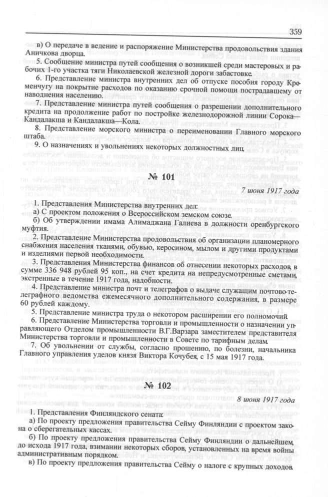 Перечень вопросов, рассматривавшихся на заседаниях Временного правительства. Журнал № 102. 8 июня 1917 года