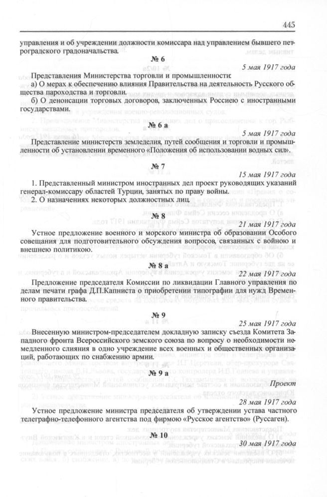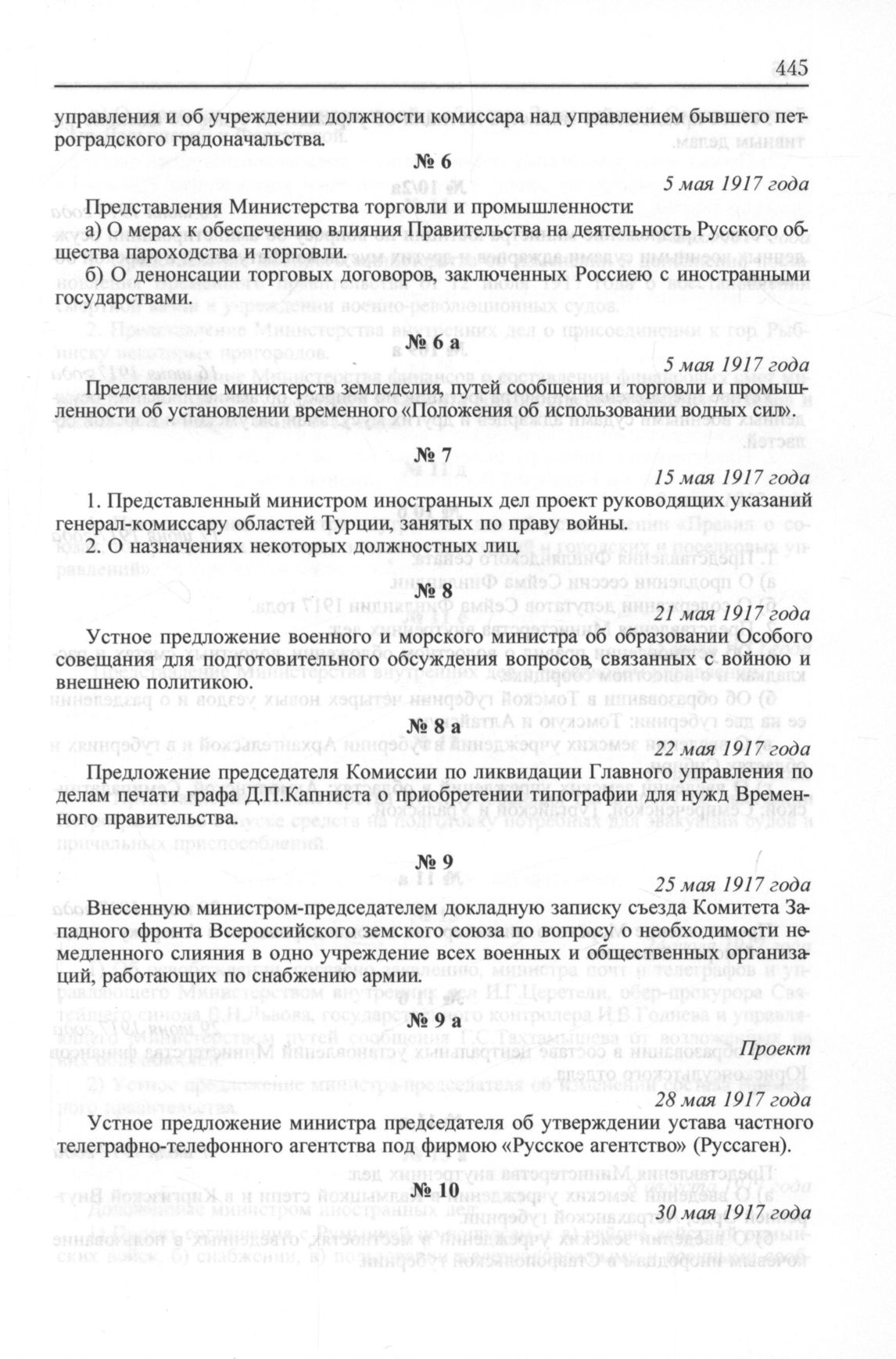 Перечень вопросов, рассматривавшихся на заседаниях Временного правительства. Особый журнал № 9 а. Проект. 28 мая 1917 года