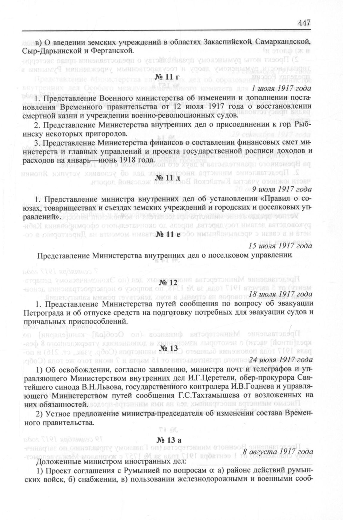 Перечень вопросов, рассматривавшихся на заседаниях Временного правительства. Особый журнал № 11 г. 1 июля 1917 года