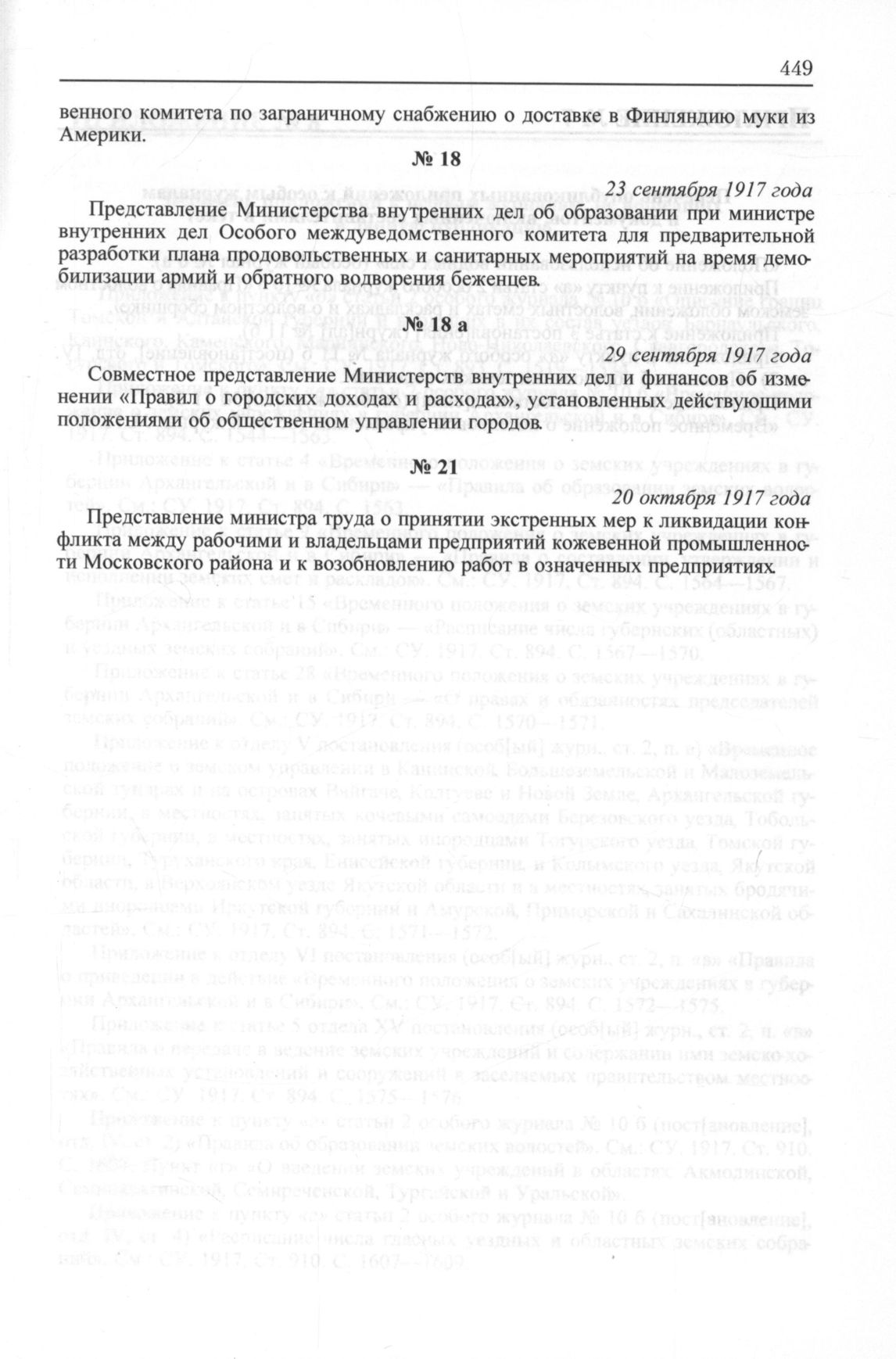 Перечень вопросов, рассматривавшихся на заседаниях Временного правительства. Особый журнал № 18 а. 29 сентября 1917 года