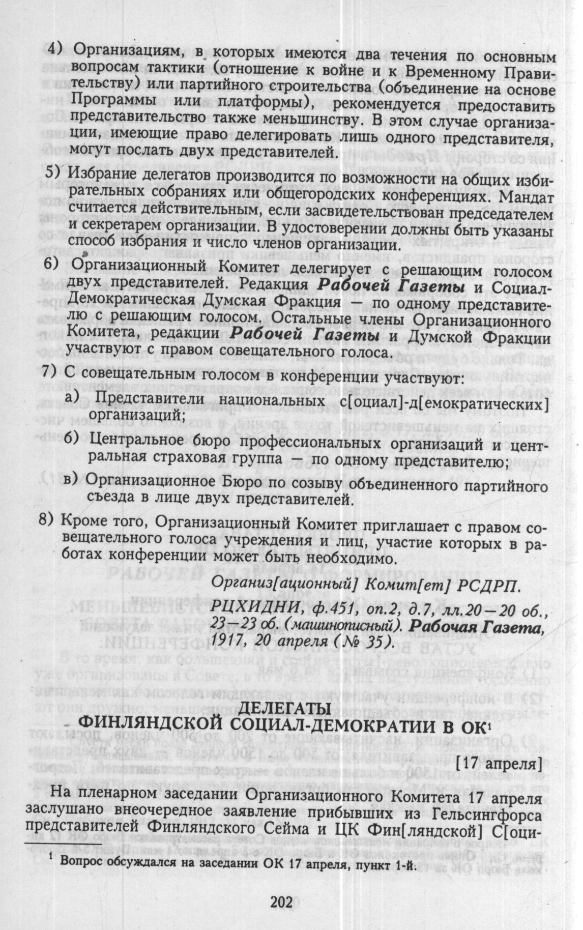 Делегаты Финляндской социал-демократии в ОК. [17 апреля] // Рабочая Газета, 1917, 27 апреля (№ 41) и 28 апреля (№ 42).