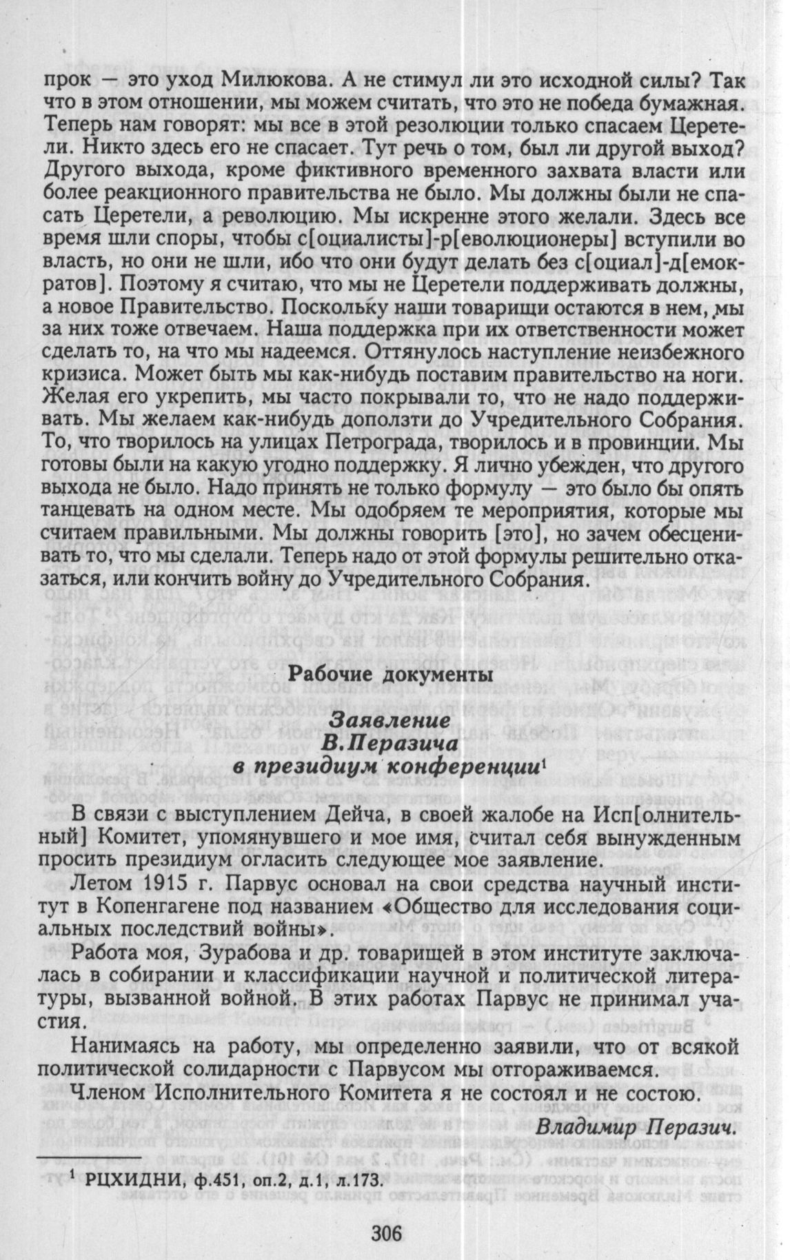 Общероссийская конференция РСДРП 7-12 мая. Вечернее заседание 7 мая. Заявление В.Перазича в президиум конференции