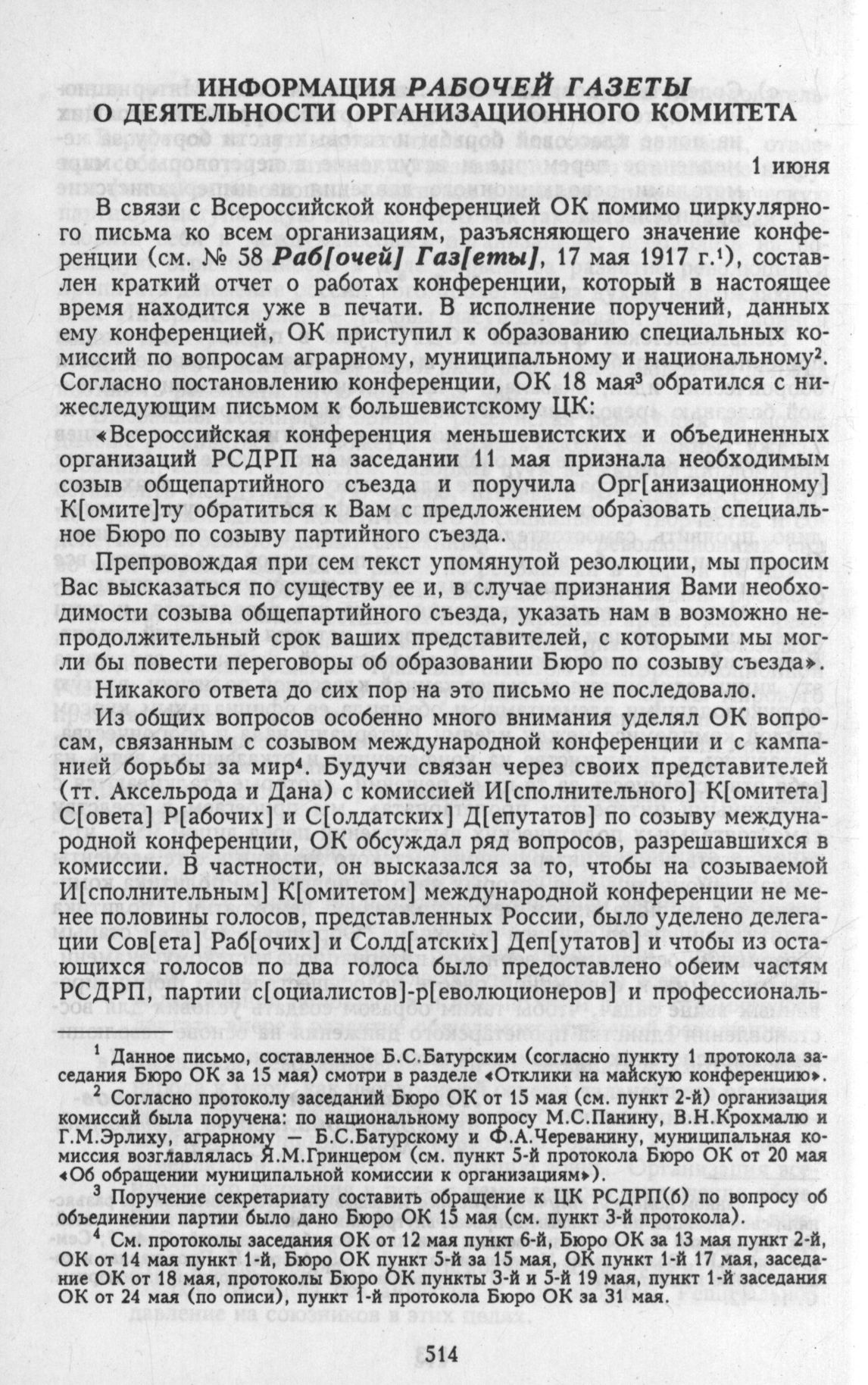 Главная Серия «Политические партии России. Конец XIX – первая треть ХХ века... Меньшевики в 1903—1931 гг. Меньшевики в 1917 году. В 3 т. Т. 1. От января до июльских событий Документы Информация Рабочей Газеты 1 июня. О деятельности Организационного К...
