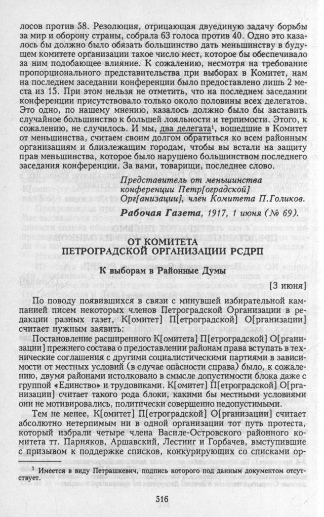 Главная Серия «Политические партии России. Конец XIX – первая треть ХХ века... Меньшевики в 1903—1931 гг. Меньшевики в 1917 году. В 3 т. Т. 1. От января до июльских событий Документы От Комитета Петроградской Организации РСДРП. К выборам в районные д...