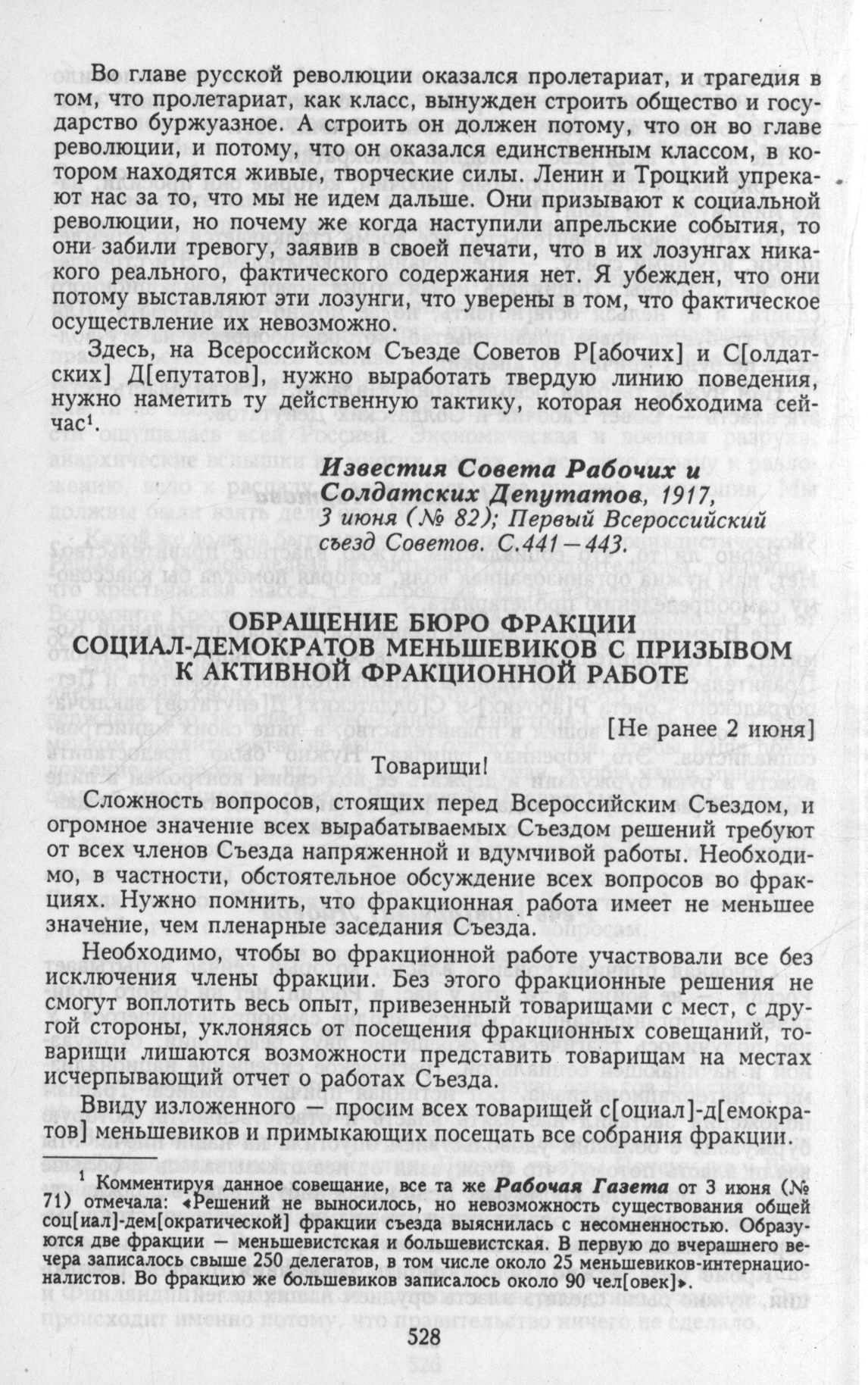 Материалы меньшевистской фракции Первого Всероссийского съезда Советов. 3 - 24 июня. Обращение Бюро фракции социал-демократов меньшевиков с призывом к ак­тивной фракционной работе [Не ранее 2 июня]