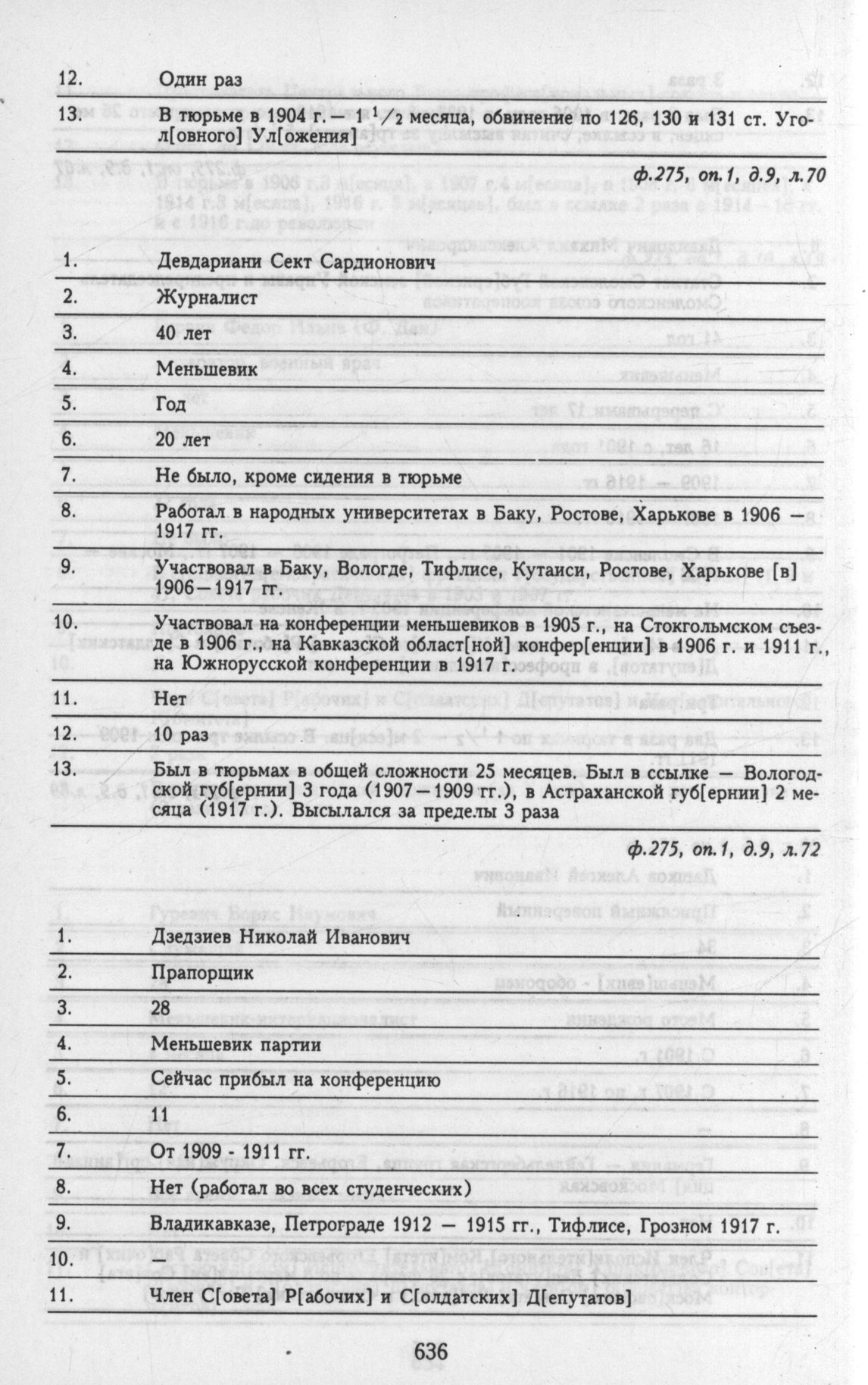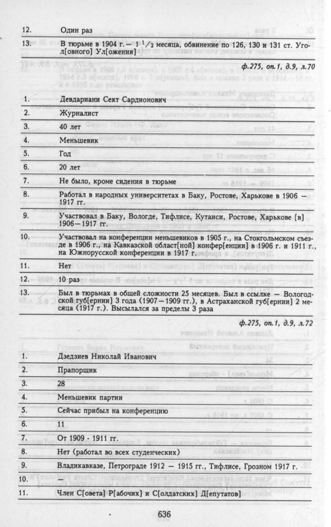 Материалы о списочном составе организаций и делегатов, представленных на общероссийской конференции РСДРП 6 - 12 мая. Личные анкеты делегатов. Дзедзиев Николай Иванович