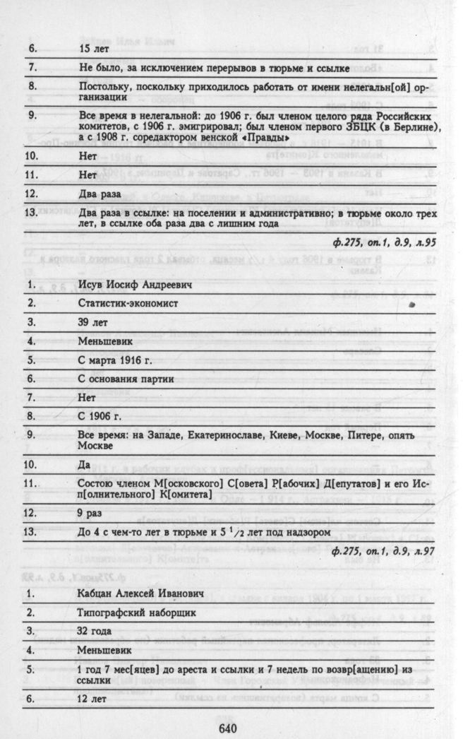 Материалы о списочном составе организаций и делегатов, представленных на общероссийской конференции РСДРП 6 - 12 мая. Личные анкеты делегатов. Кабцан Алексей Иванович
