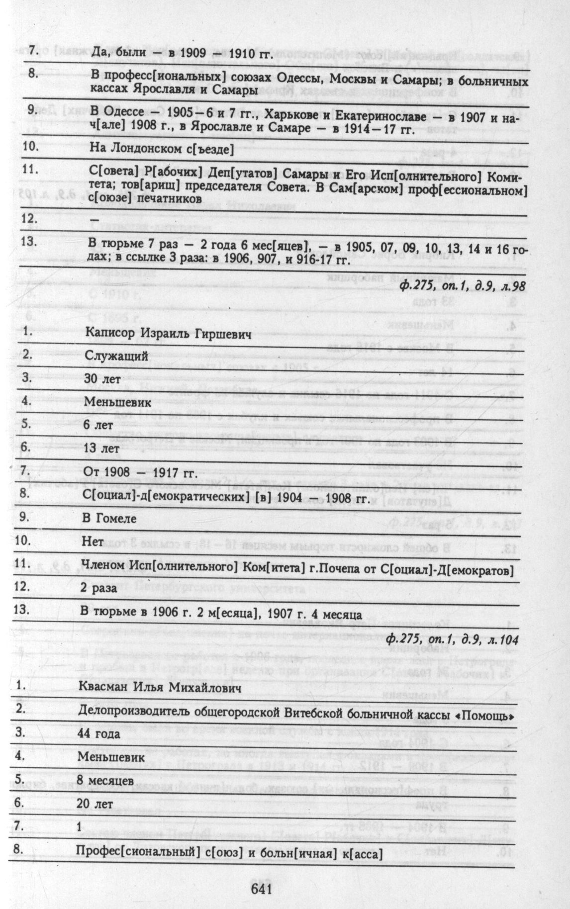 Материалы о списочном составе организаций и делегатов, представленных на общероссийской конференции РСДРП 6 - 12 мая. Личные анкеты делегатов. Каписор Израиль Гиршевич