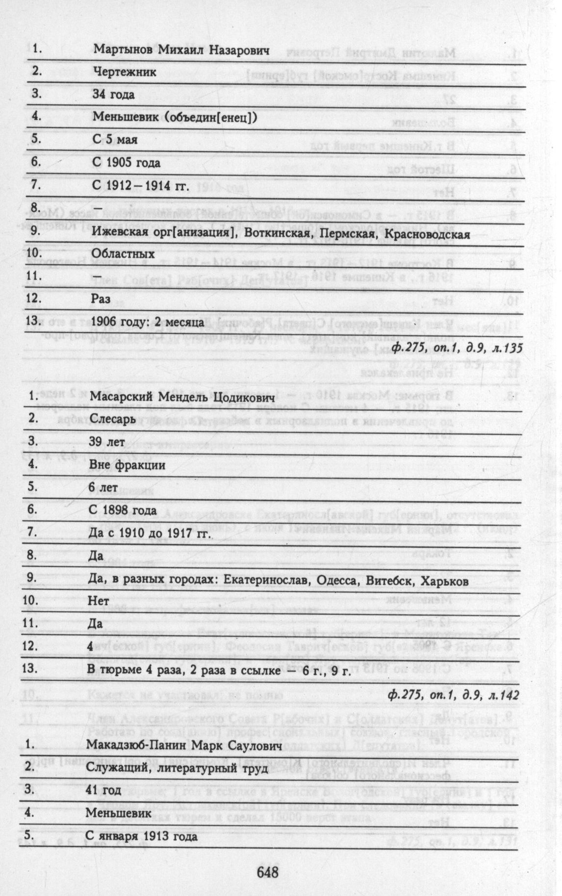 Материалы о списочном составе организаций и делегатов, представленных на общероссийской конференции РСДРП 6 - 12 мая. Личные анкеты делегатов. Мартынов Михаил Назарович